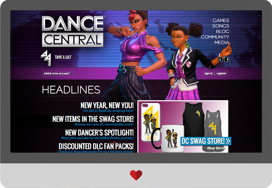 I worked on the redesign of the Dance Central website for the Dance Central 3 game. I was responsible for visual, UX and front end updates to the existing site. The Dance Central site was rolled into the Harmonix site in an effort to consolidate our web presences and reinforce our umbrella brand.